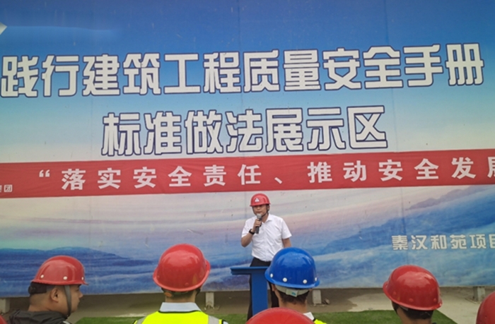 秦漢和苑項目經(jīng)理申宏亮對項目安全管理作了經(jīng)驗(yàn)交流并對安全生產(chǎn)做出了鄭重承諾。他提到,現(xiàn)場安全生產(chǎn)不光要明確目標(biāo)、突出重點(diǎn),更要樹立大局意識,認(rèn)清形勢、狠抓落實(shí)。只有把安全生產(chǎn)工作做細(xì)做好、落到實(shí)處,才能創(chuàng)造一個安全、有序、和諧的生產(chǎn)環(huán)境。